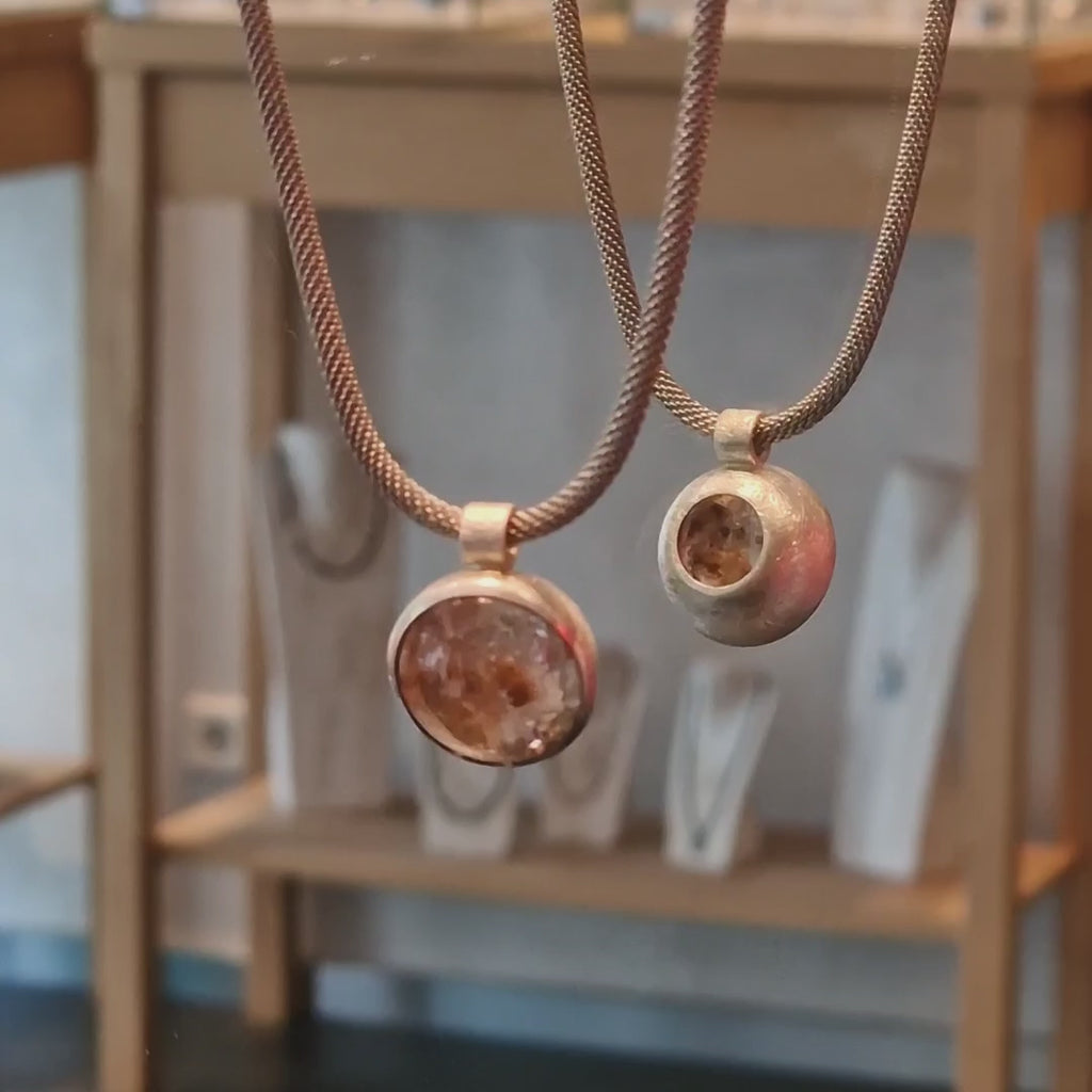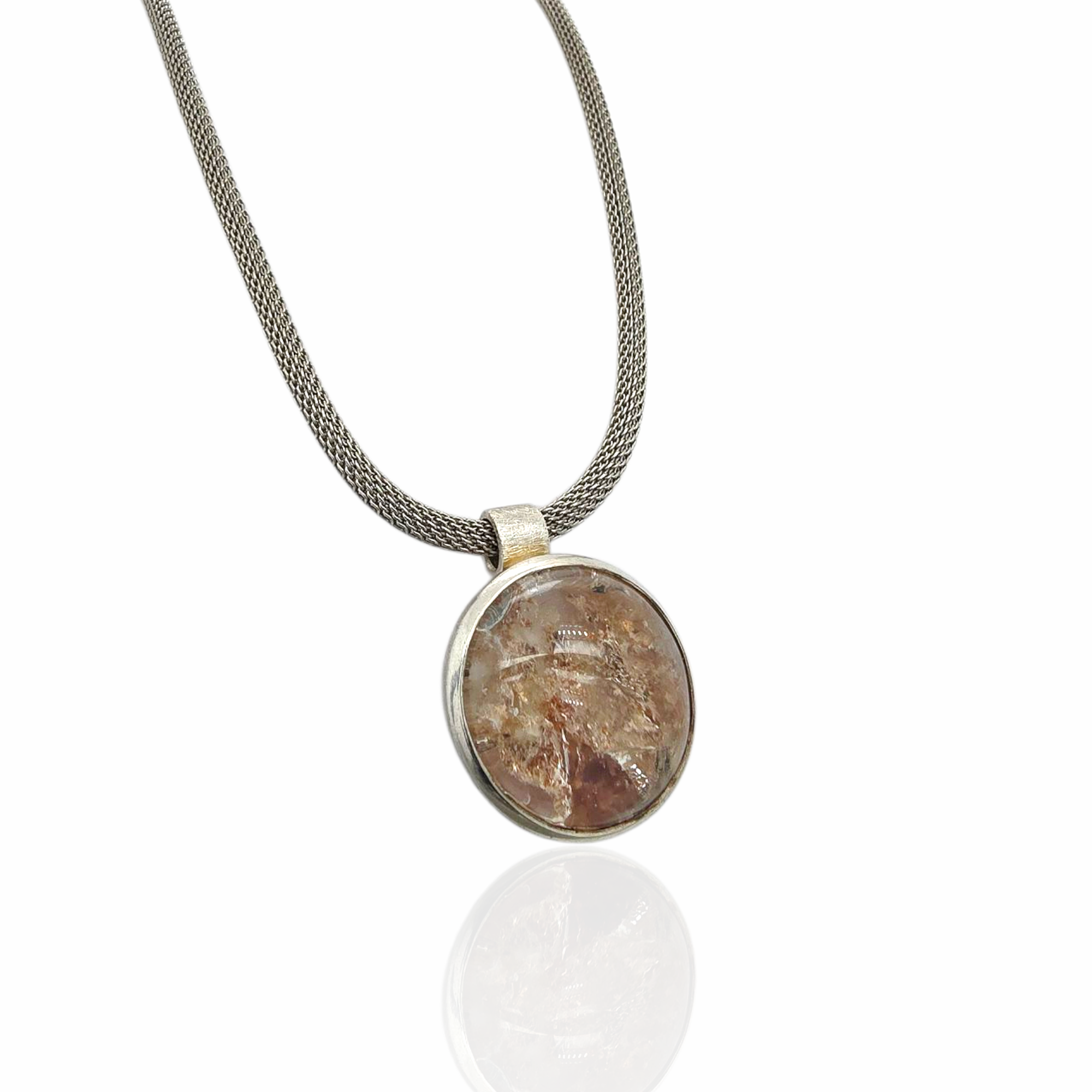 Jeder Stein wird sorgfältig ausgewählt, um seine natürliche Schönheit zu präsentieren. Der faszinierende Quarz hat durch das Muttergestein ein ganz individuelles Muster, womit der Anhänger zu einem wahren Unikat wird.