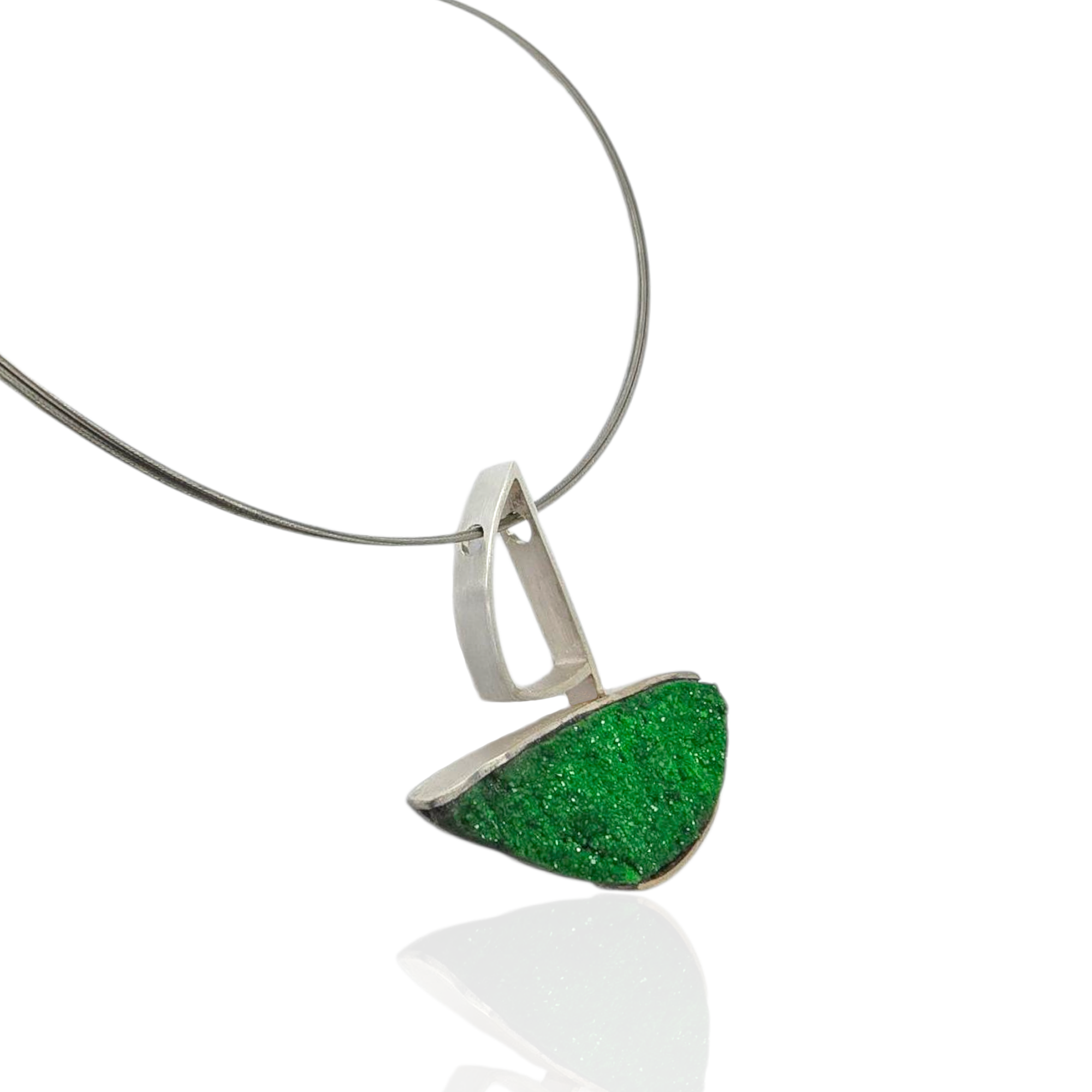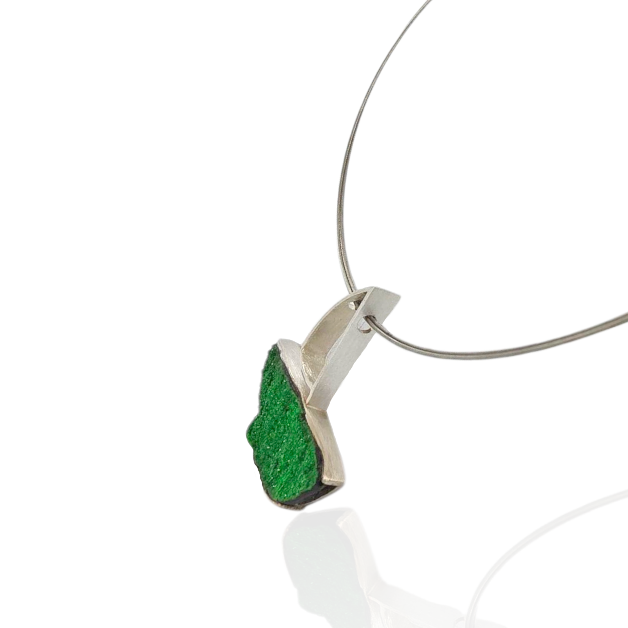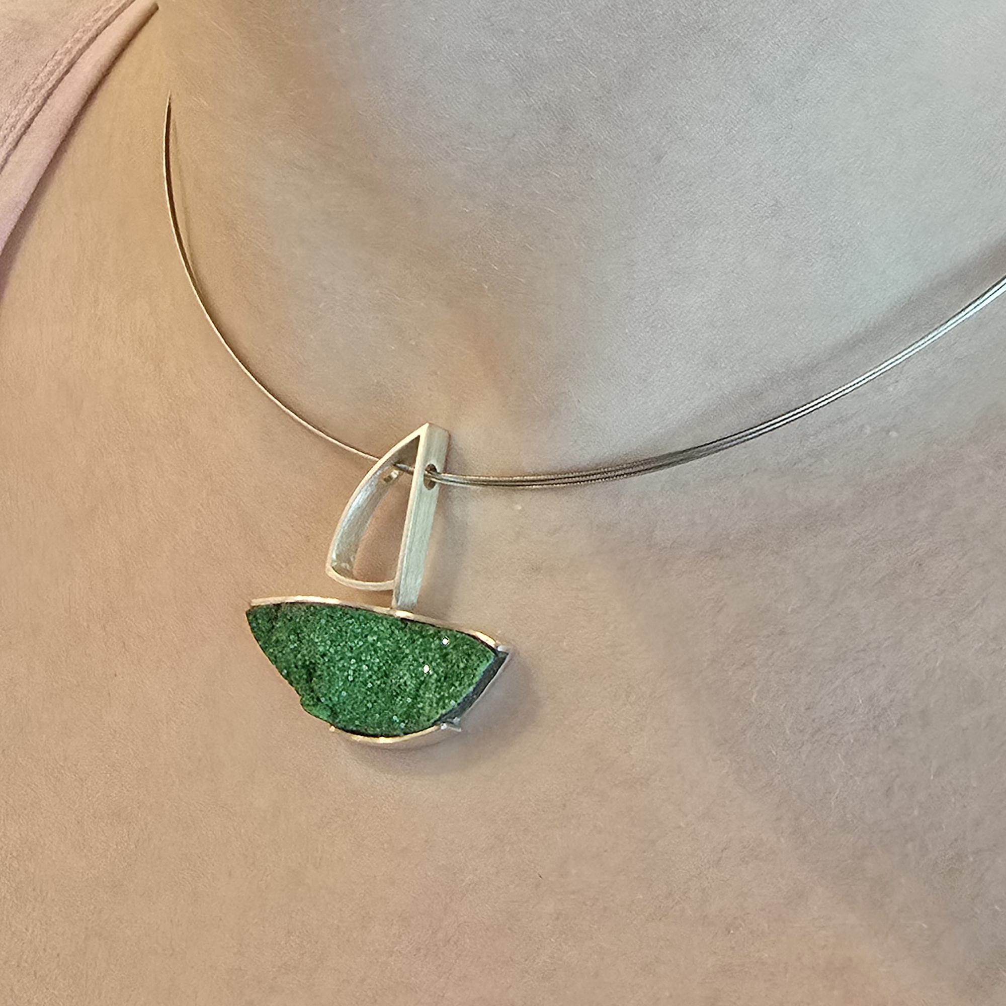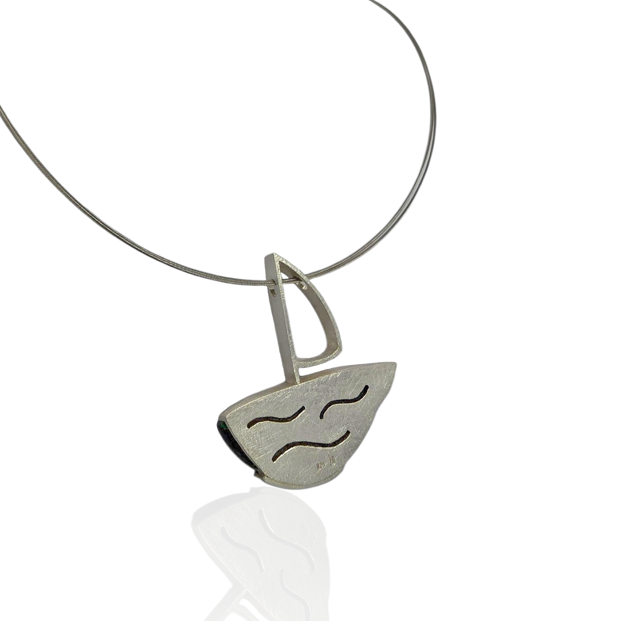 Einzigartiger Uwarowit Kettenanhänger in Schiffsform aus Silber