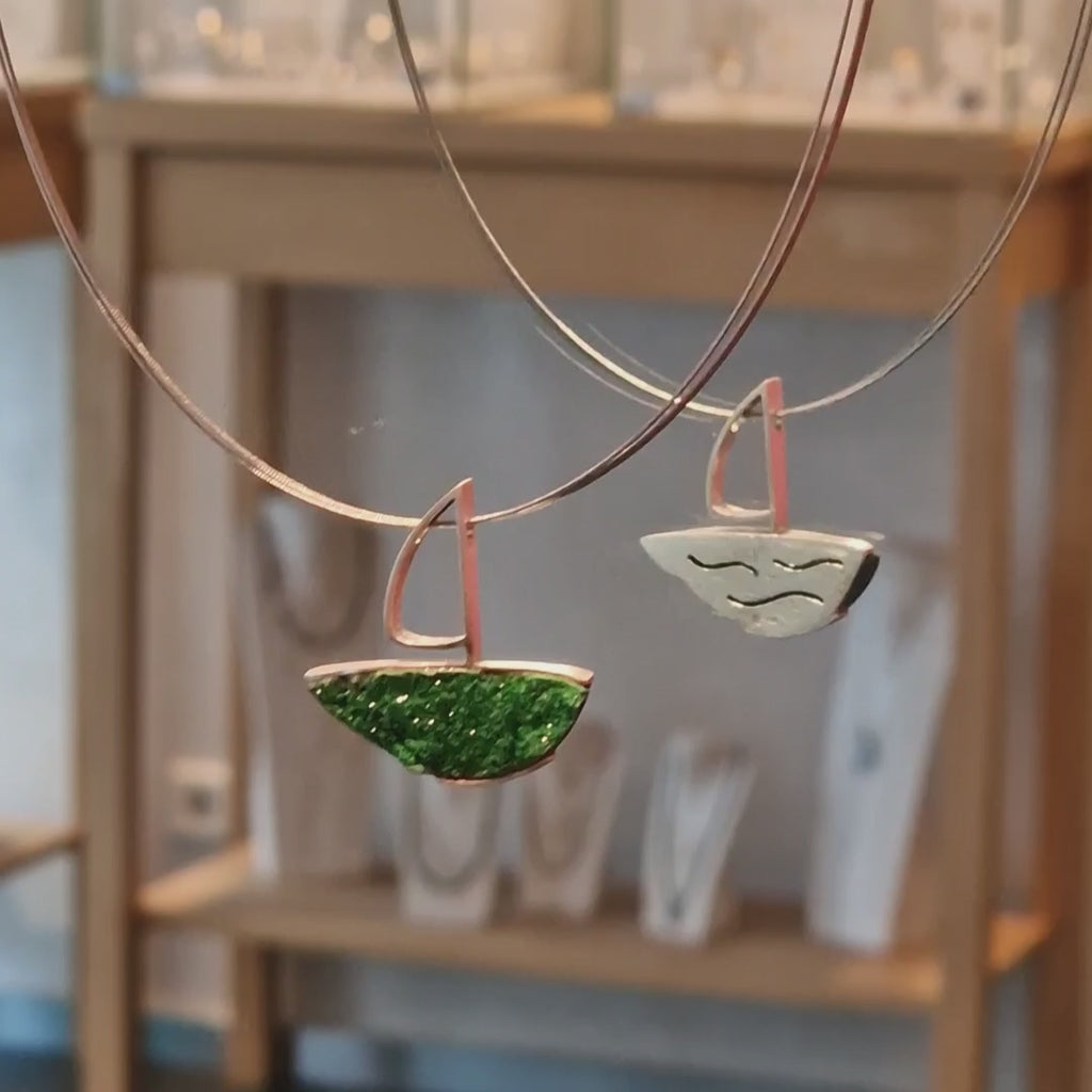 Dieser einzigartige Anhänger in Schiffsform macht Lust auf Sommer und Urlaub. Gefertigt aus 925/- Silber, besticht der Anhänger durch seinen Schiffsrumpf aus Uwarowith, einer kräftig grünen Granatvarietät. Die kristalline Struktur des Uwarowits lässt den Anhänger bei jeder Bewegung glitzern und zieht alle Blicke auf sich. Ein besonderes Accessoires für besondere Momente wie zum Geburtstag, Muttertag, Weihnachten und vielen weiteren deiner persönlichen Anlässe